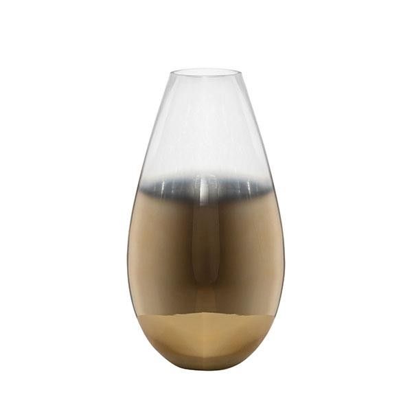 СТЪКЛЕНА ВАЗА ПРОЗРАЧНО-ЗЛАТИСТА 19.8X19.8X36СМ