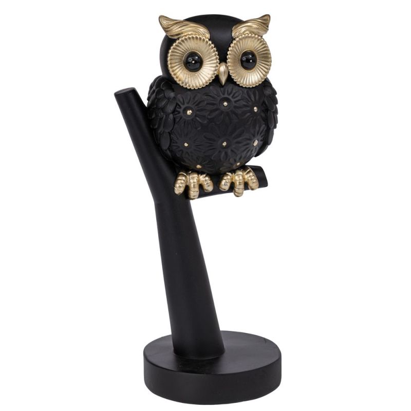 ЧЕРНА МАТОВА ПОЛИРЕЗИНОВА СОВА НА КЛОН 12X11X27СМ