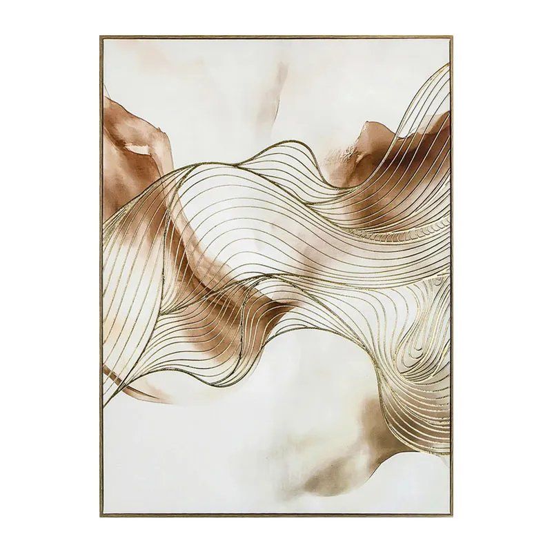 АБСТРАКТНА КАРТИНА ВЪРХУ ПЛАТНО, КРЕМАВ/КАФЯВ ЦВЯТ, РЕЛЕФЕН ЕФЕКТ, В РАМКА - 60x80x3.5 см, 15 бр./КУТИЯ
