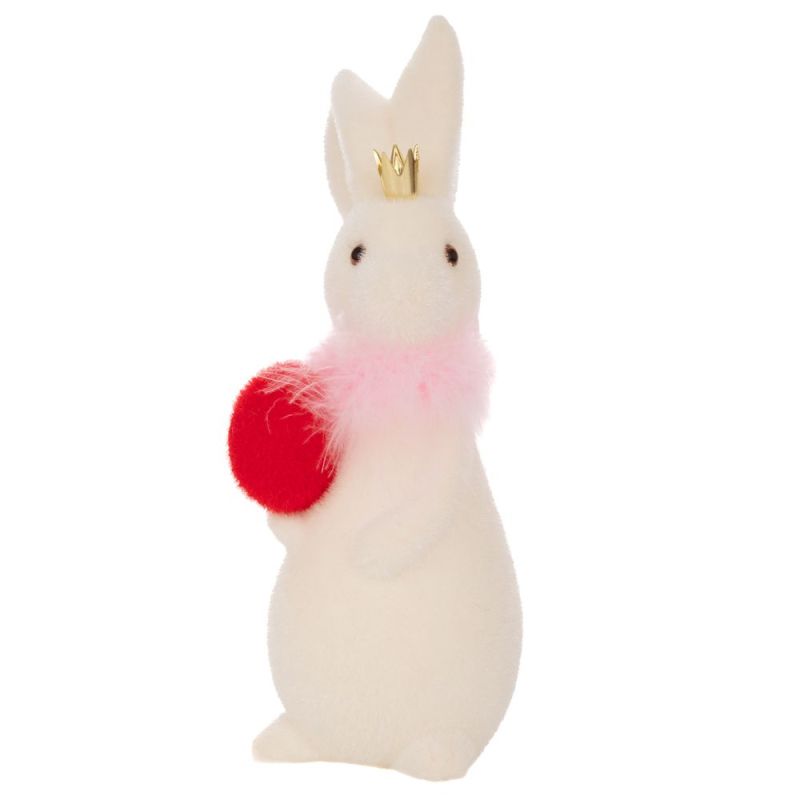 Бял зайче с червено яйце и корона на главата, великденска декорация 30 см