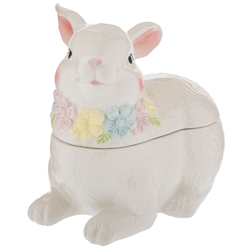 БЯЛ КЕРАМИЧЕН БУРКАН ЗА БИСКВИТКИ СЪС ЗАЙЧЕ 20X12X16.5 СМ