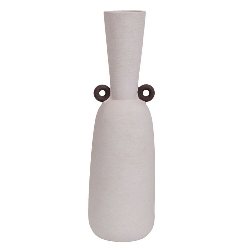 БЯЛА КЕРАМИЧНА ВАЗА С ЧЕРНИ ДЕТАЙЛИ 18X18X60 СМ