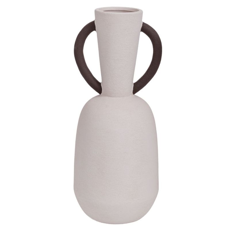 БЯЛА КЕРАМИЧНА ВАЗА С ЧЕРНИ ДРЪЖКИ 19,5X19,5X48СМ