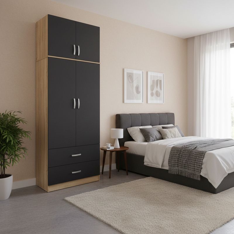 Гардероб с две врати, 2 чекмеджета Athos в цвят дъб-тъмносив 80x42x240см