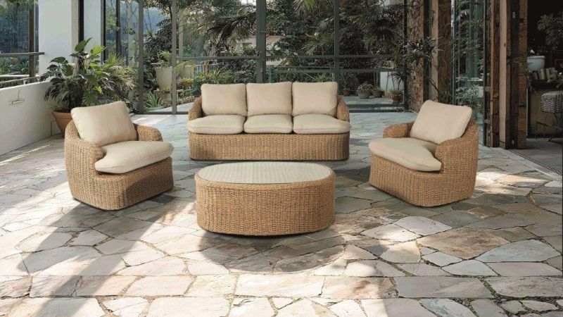 ГРАДИНСКИ КОМПЛЕКТ CHICAGO: 3 МЕСТА + 2 ФОТЬОЙЛА + 1 МАСИЧКА ЗА КАФЕ ALU - ПЛЕТЕН ЦВЯТ, БЕЖОВИ ВЪЗГЛАВНИЦИ