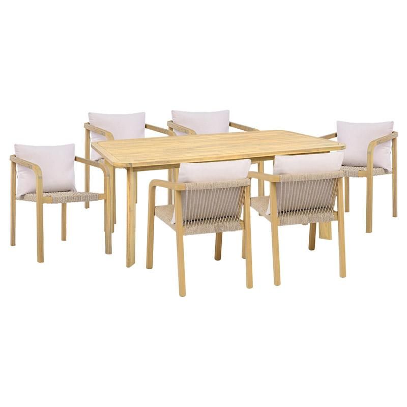 ГРАДИНСКИ СЕТ ЗА ТРАПЕЗА ОТ 7 ЧАСТА, АКАЦИЕВО ДЪРВО, SUMMERSET, РАМКА В ЕСТЕСТВЕН ЦВЯТ, БЕЖОВ ПЛАТ, 180X100X75СМ