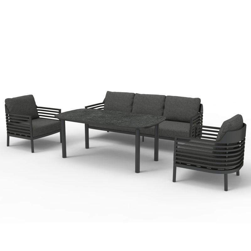 ГРАДИНСКИ СЕТ ОТ 4 WALES SM6422.01 ТЪМЕН АЛУМИНИЙ И ОЛЕФИН - СИВ 3D ПРИНТИРАН СТЪКЛЕН ПЛОТ