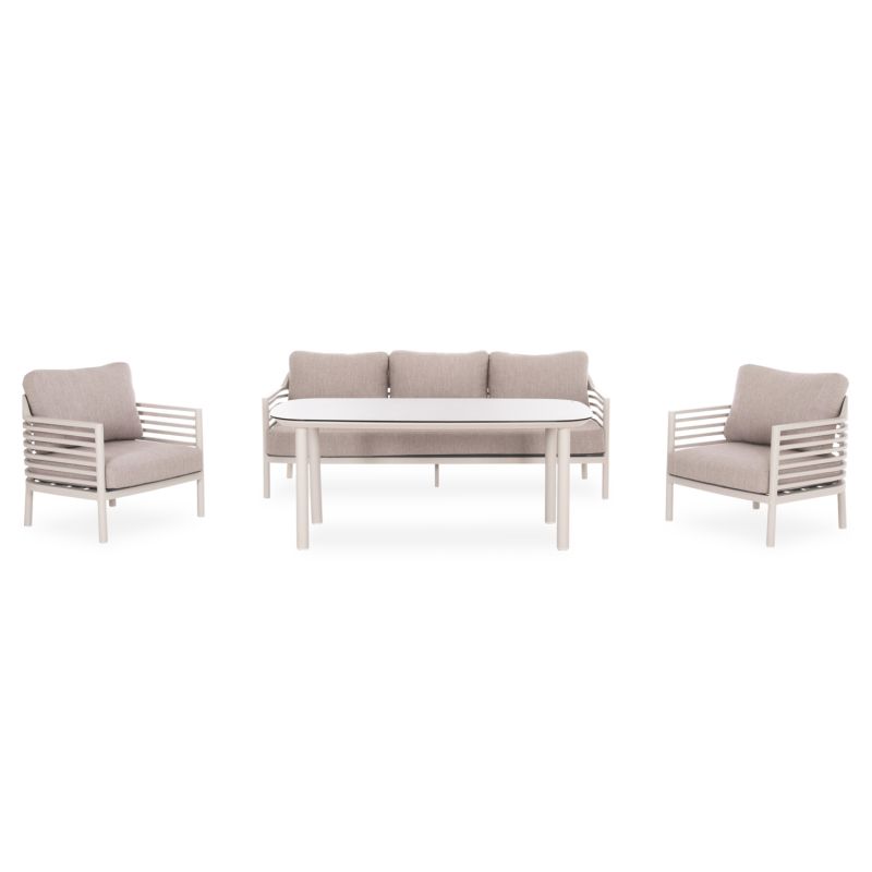 ГРАДИНСКИ СЕТ ОТ 4 ЧАСТИ WALES SM6422.02 КРЕМАВ БЯЛ АЛУМИНИЙ - БЕЖОВ ОЛЕФИН - СВЕТЛО СИВ 3D ПРИНТИРАН СТЪКЛЕН ПЛОТ