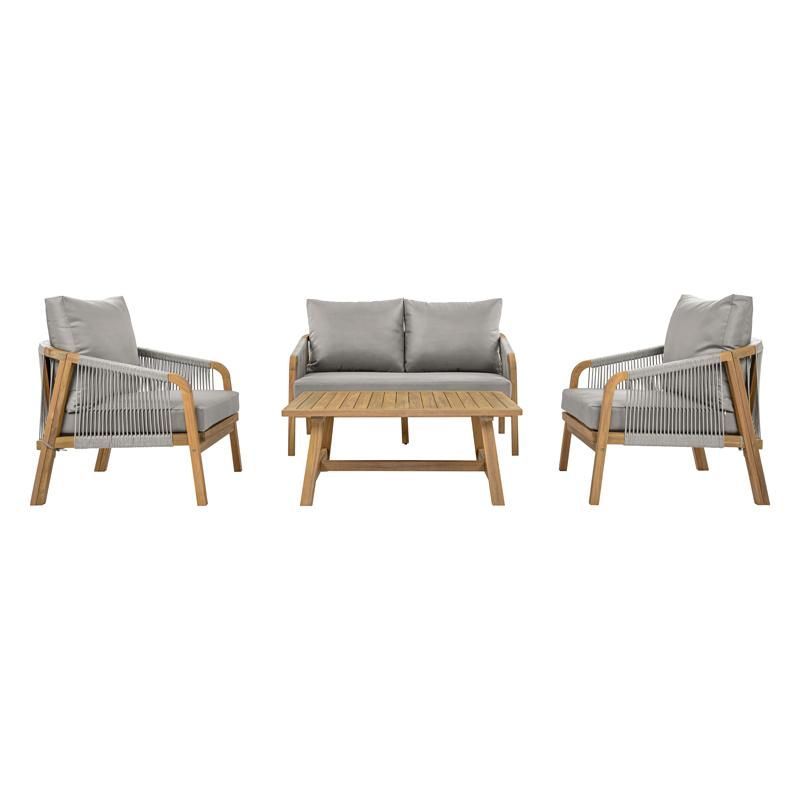 ГРАДИНСКИ СЕТ ОТ 4 ЧАСТИ АКАЦИЕВО ДЪРВО MARISELLE РАМКА В ЕСТЕСТВЕН ЦВЯТ СИВ ПЛАТ