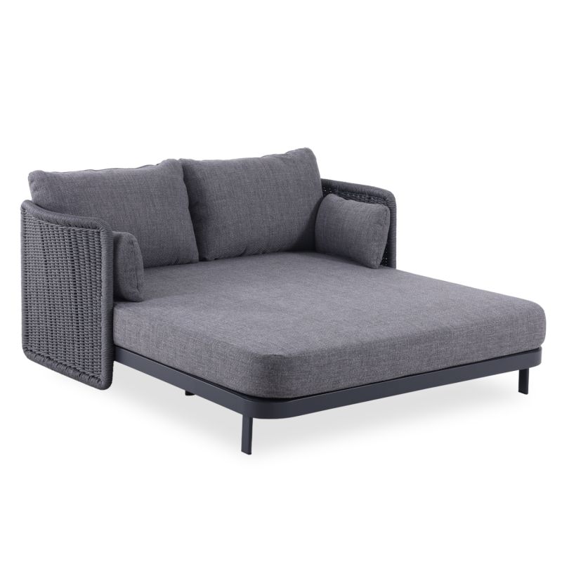 ДВУМЕСТЕН ДИВАН DESTINY SM6408.02, ИЗРАБОТЕН ОТ АЛУМИНИЙ И ПЛЕТЕНА РАТА, ЦВЯТ ВЪГЛЕН, 202X170X73.5H