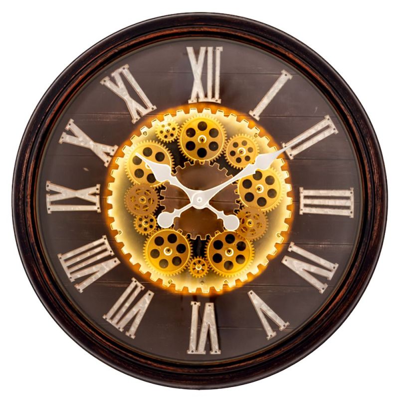 ДЕКОРАТИВЕН КРЪГЪЛ МЕТАЛЕН СТЕНЕН ЧАСОВНИК В КАФЯВ ЦВЯТ С БЕЗЖИЧНО УПРАВЛЕНИЕ НА СВЕТЛИНАТА В 3 ЦВЯТА, Д 57 СМ
