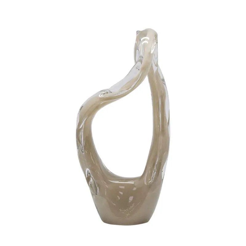ДЕКОРАТИВНА ВАЗА ОТ ДУХАНО СТЪКЛО, БЕЖОВО/ПРОЗРАЧНО, АБСТРАКТНО, ВИСОКО - 17x10.5x34.5 см, 4 бр./КУТИЯ