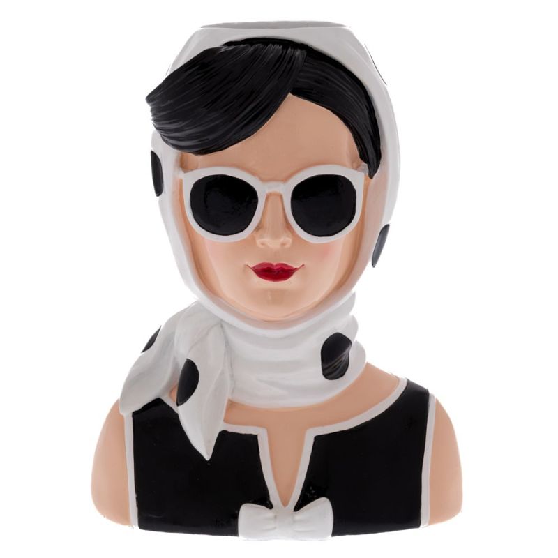 ДЕКОРАТИВНА ВАЗА ОТ ПОЛИРЕЗИН, РЕТРО ЖЕНСКА ФОРМА, ЧЕРНО-БЯЛ ЦВЯТ, 20X14X25 СМ