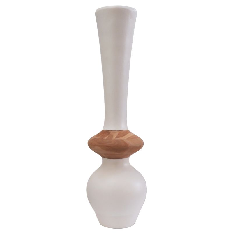 ДЕКОРАТИВНА ПОДОВА ВАЗА NEBULA HM4660.02M ФИБРО ЦИМЕНТ В БЯЛО - ТИКОВО ДЪРВО Φ45X143HСМ.