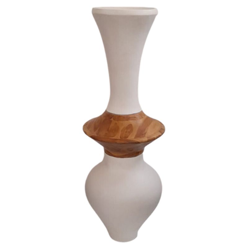 ДЕКОРАТИВНА ПОДОВА ВАЗА NEBULA HM4660.02S ФИБРО ЦИМЕНТ В БЯЛ ЦВЯТ - ТИКОВО ДЪРВО Φ45X120HCM.