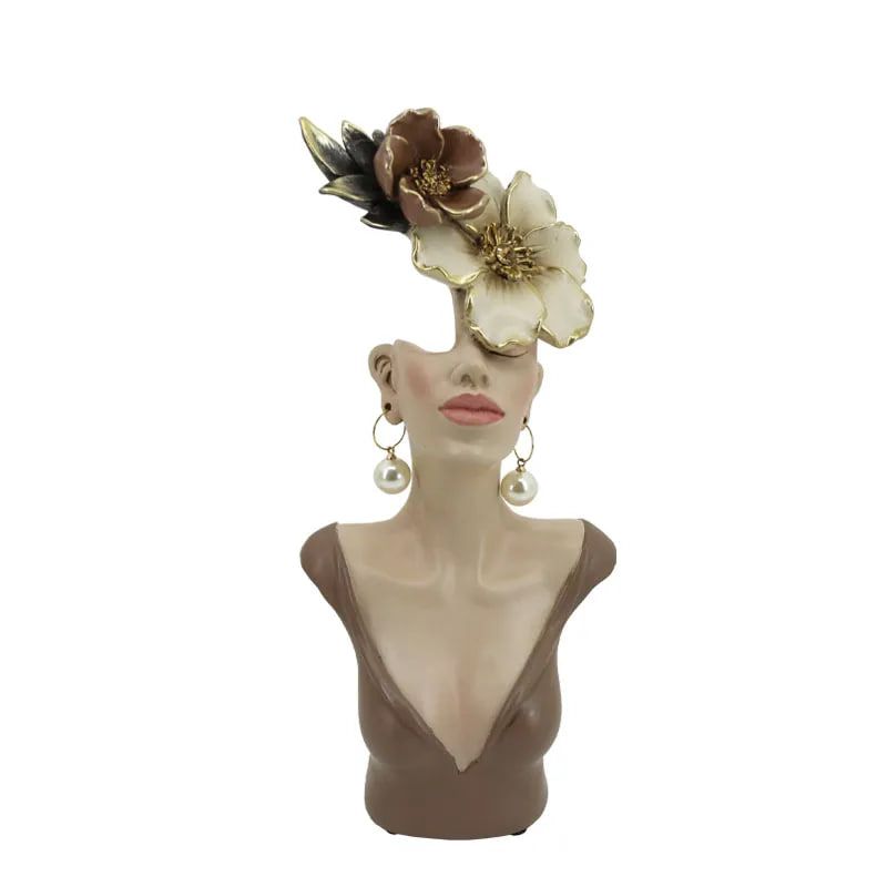 ДЕКОРАТИВНА ФИГУРА НА БЯЛА ЖЕНА С ЦВЕТЯ НА ГЛАВАТА - 11.5x6.5x25.5см 18/KIB