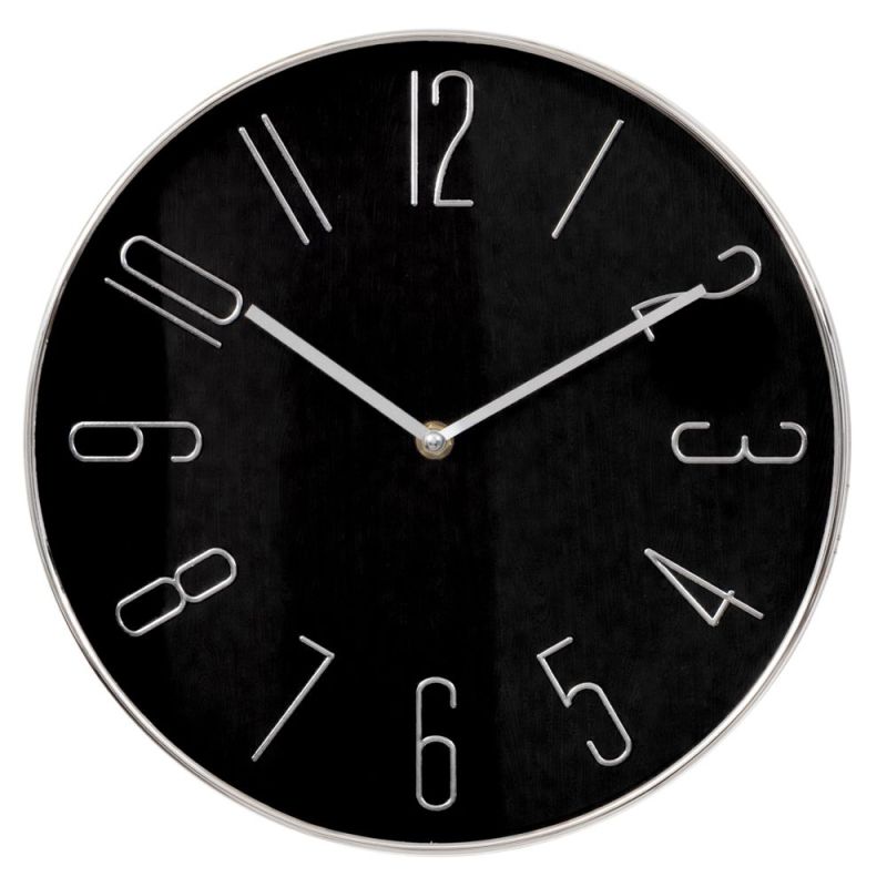 ДЕКОРИРАН КРЪГЪЛ МЕТАЛЕН СТЕНЕН ЧАСОВНИК В ЧЕРЕН И СРЕБЪРЕН ЦВЯТ, 30 СМ