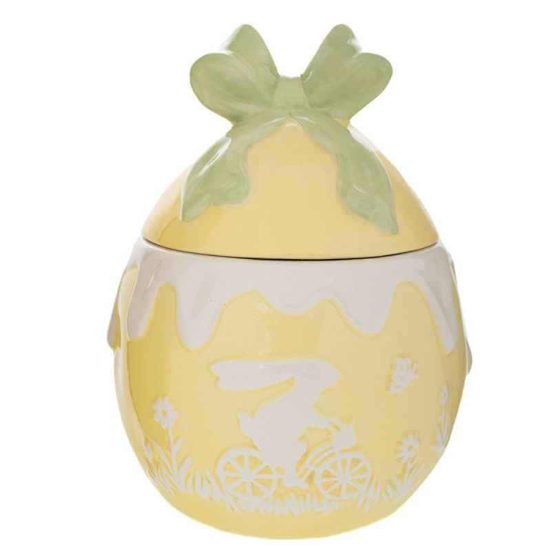 ЖЪЛТ КЕРАМИЧЕН БУРКАН ЗА БИСКВИТКИ СЪС ЗАЕК И ПАНДЕЛКА 16,5X16,5X23 СМ