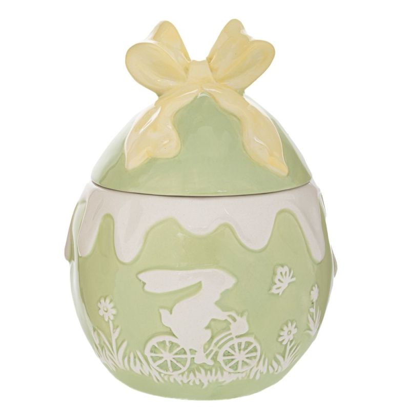 ЗЕЛЕН КЕРАМИЧЕН БУРКАН ЗА БИСКВИТКИ СЪС ЗАЙЧЕ 16,5X16,5X23СМ