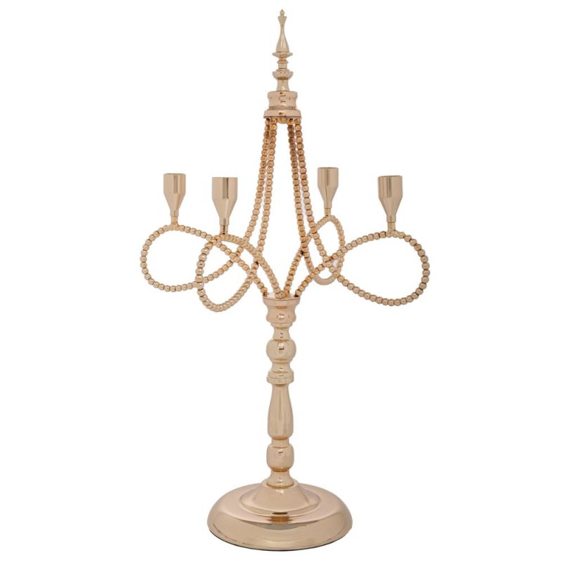 ЗЛАТИСТ МЕТАЛЕН 4-СТЕПЕНЕН СВЕЩНИК С ИНТЕНЗИВЕН ДИЗАЙН 32X32X53 СМ