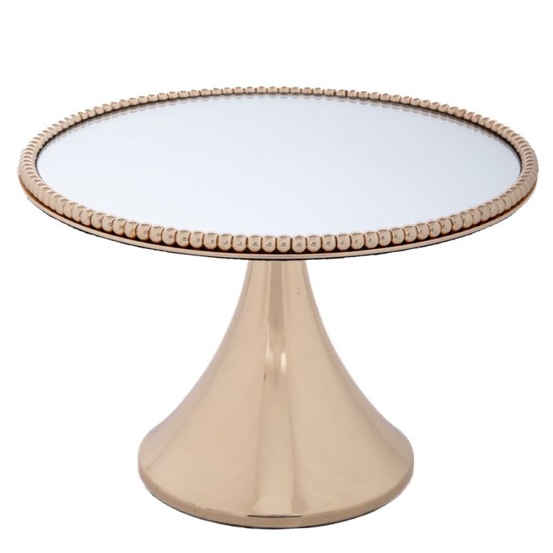 ЗЛАТИСТ МЕТАЛЕН ПОДНОС СЪС СТЪКЛЕНА ПОВЪРХНОСТ 25X25X17 СМ