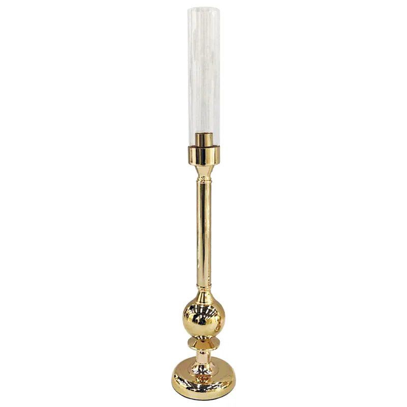 ЗЛАТИСТ/БЯЛ МЕТАЛЕН СВЕЩНИК, КЛАСИЧЕСКИ СЪС СТЪКЛО, ГОЛЯМ - Φ12x68см, 12/КУТИЯ