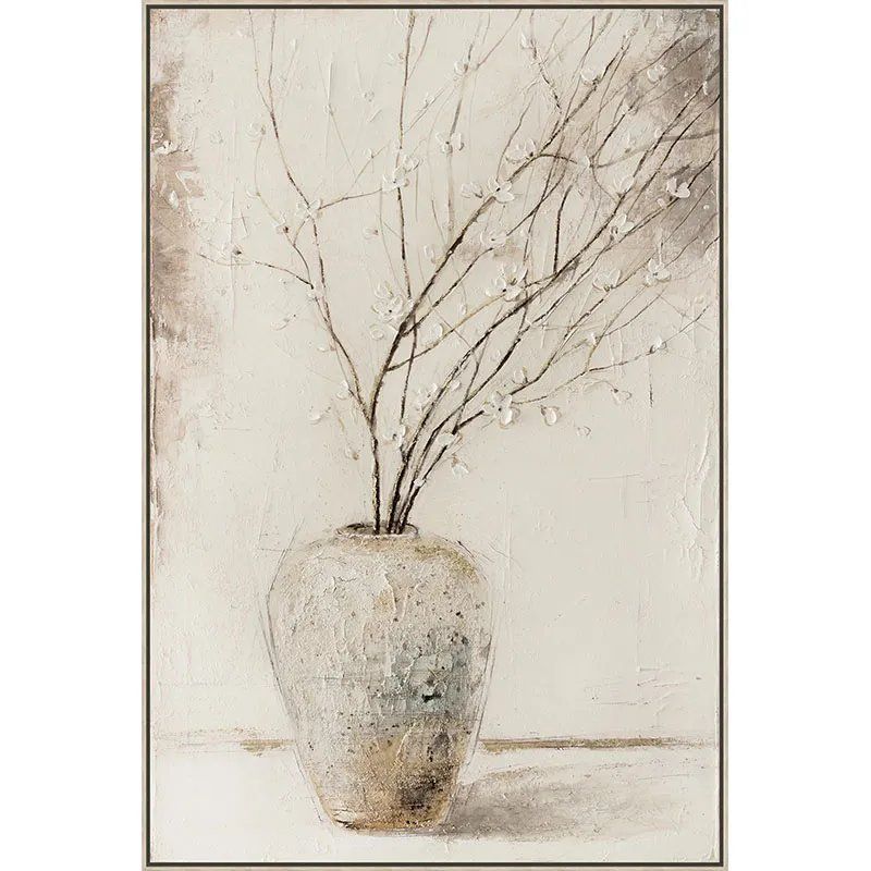 КАРТИНА ВЪРХУ ПЛАТНО ВАЗА С КЛОНИ И БУКЕТИ, БЕЖОВА С 3D ЕЛЕМЕНТИ В РАМКА - 82.5x122.5x3.5см 8 БР./КУТИЯ