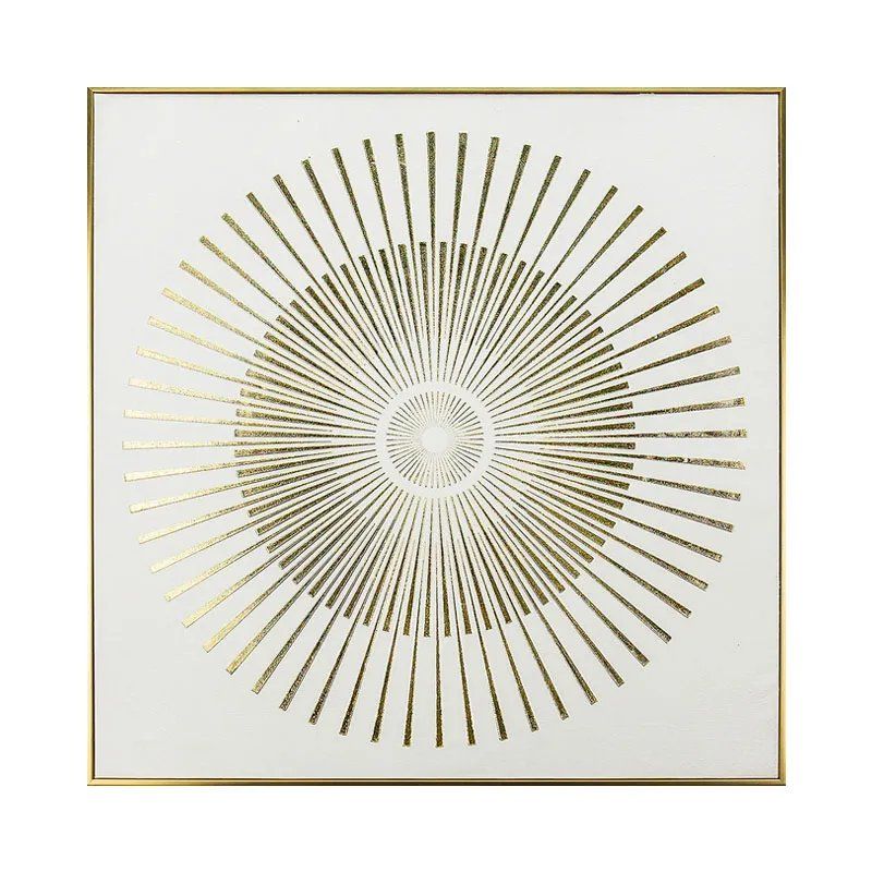 КАРТИНА ВЪРХУ ПЛАТНО С РАДИАЛНИ КРЪГОВЕ, ЗЛАТИСТО/БЯЛ РЕЛЕФЕН ЕФЕКТ В РАМКА - 70x70x3 см 12/КУТИЯ