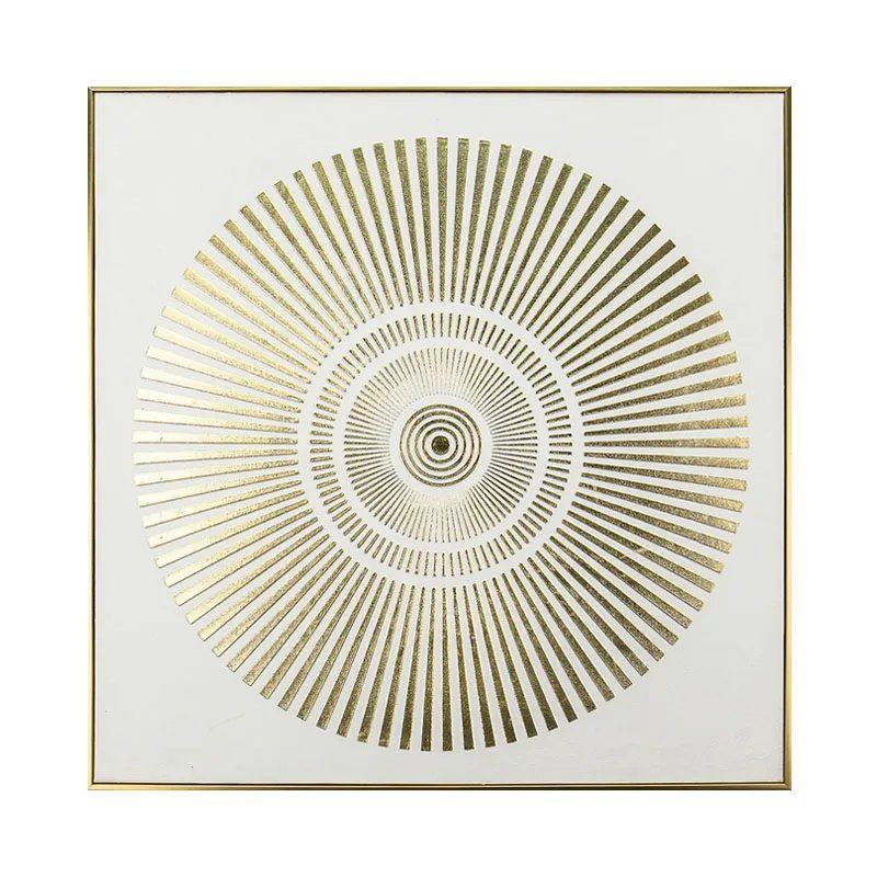 КАРТИНА ВЪРХУ ПЛАТНО С РАДИАЛНИ КРЪГОВЕ, ЗЛАТИСТО/БЯЛ РЕЛЕФЕН ЕФЕКТ В РАМКА - 70x70x3 см 12/КУТИЯ