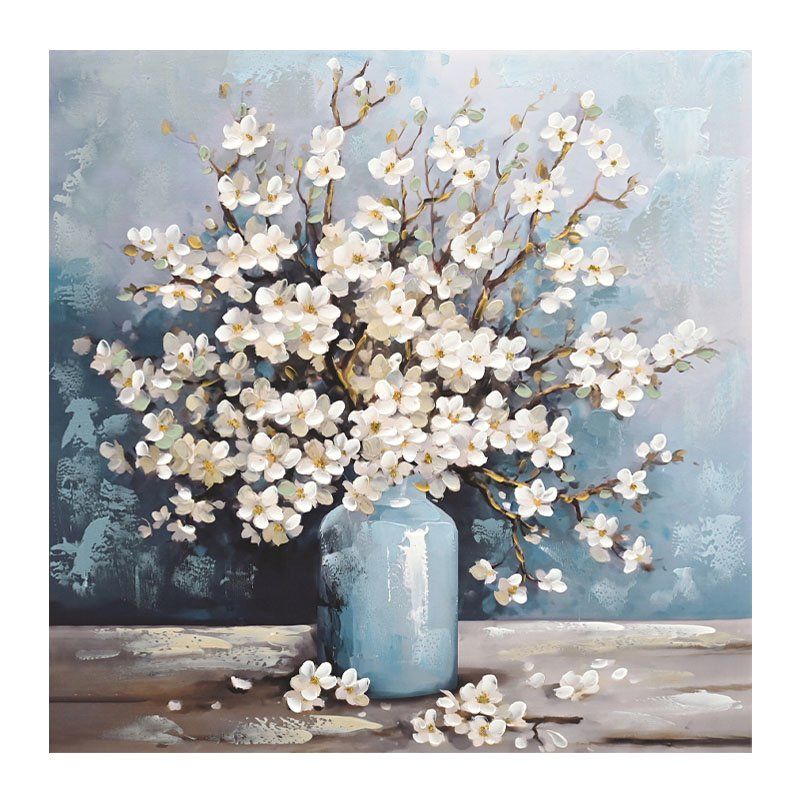 КАРТИНА ВЪРХУ ПЛАТНО СИНЬО-БЯЛА ВАЗА С ПЕРЛИ 80x80СМ 8/KIB