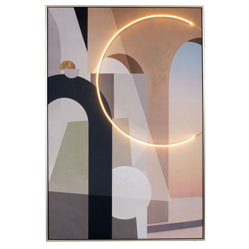 КАРТИНА КОЛОЕЗДАЧЕ С LED СВЕТЛИНА СЪС СРЕБЪРНА РАМКА ВЪРХУ ПРИНТИРАНО ПЛАТНО 80X120 СМ