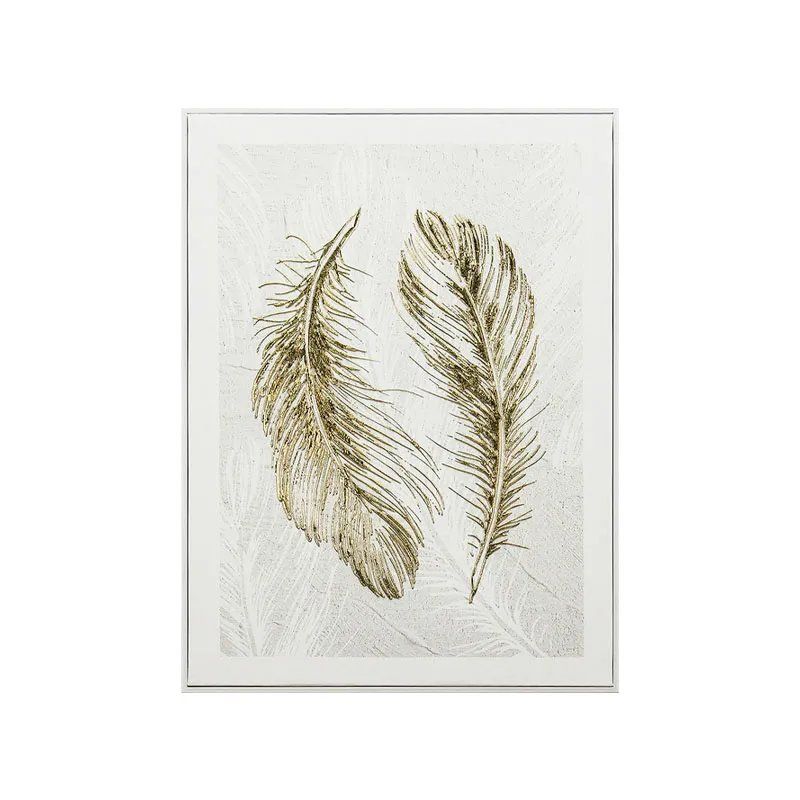 КАРТИНА НА ПЛАТНО 2 КРИЛА ЗЛАТИСТО/БЯЛО РЕЛЕФЕН ЕФЕКТ В РАМКА - 40x60x2.5 см 9 БР./КУТИЯ