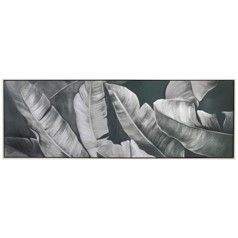 КАРТИНА С БАНАНОВИ ЛИСТА С БЯЛА РАМКА ВЪРХУ ПЛАТНО С ПРИНТ 40Х120 СМ