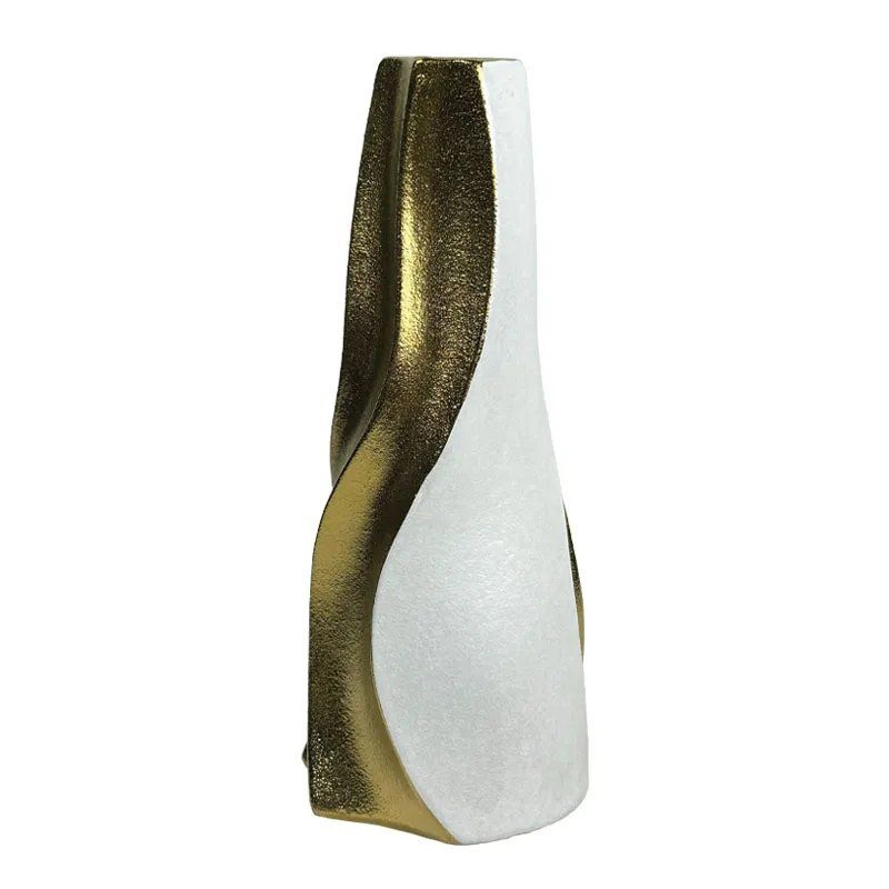 КЕРАМИЧНА ВАЗА БЯЛА/ЗЛАТНА КОНУСНА ВЕРТИКАЛНА ВЪЛНА ГОЛЯМА - 43.7 см 1/4 КУБ