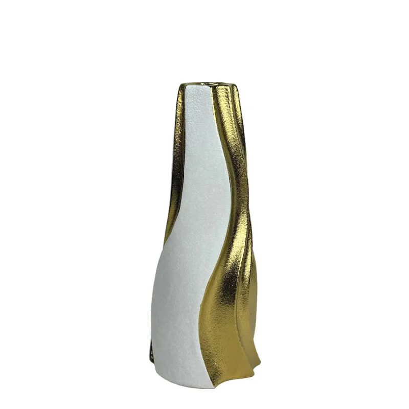 КЕРАМИЧНА ВАЗА БЯЛА/ЗЛАТНА КОНУСНА ВЕРТИКАЛНА ВЪЛНА МАЛКА - 36.8 см 1/6KIB