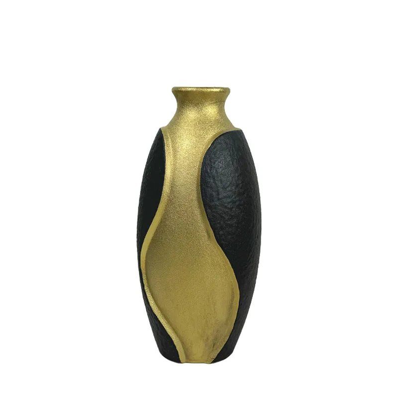 КЕРАМИЧНА ВАЗА ЗЛАТНА С ЧЕРНО РЕЛЕФНО ПОКРИТИЕ ГОЛЯМА - 37,6 см 1/6KIB