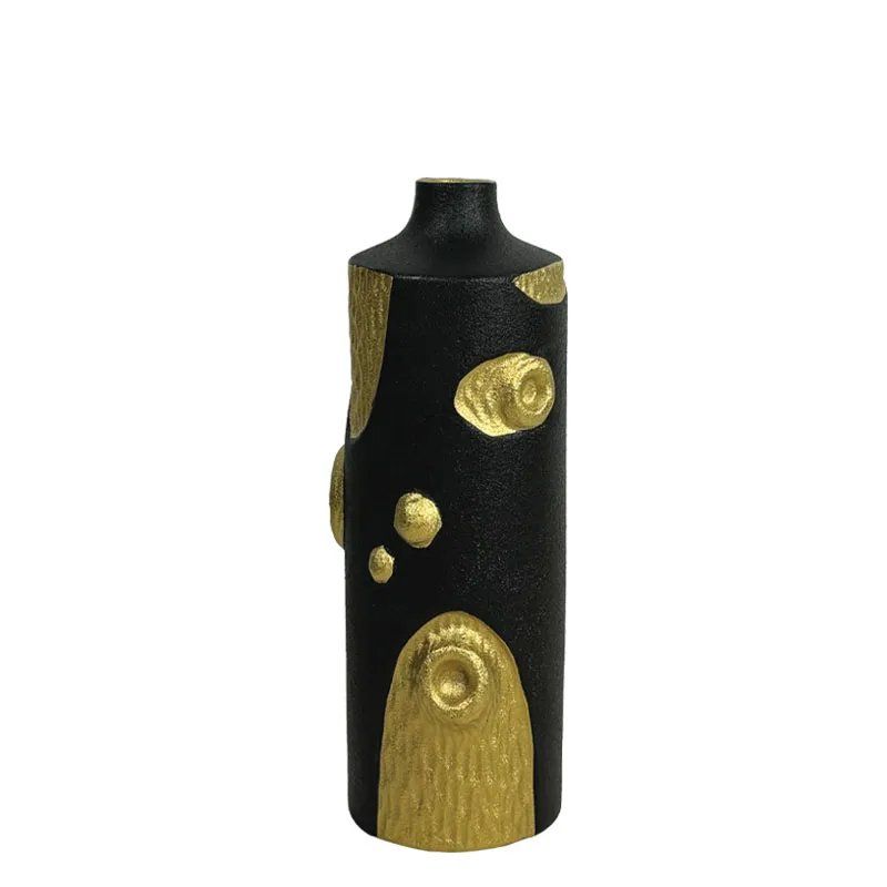 КЕРАМИЧНА ВАЗА ЧЕРНА ВИСОКА СЪС ЗЛАТИСТИ ДОПЪЛНИТЕЛНИ ЧАСТИ СРЕДНА - 36.8 см1/9KIB
