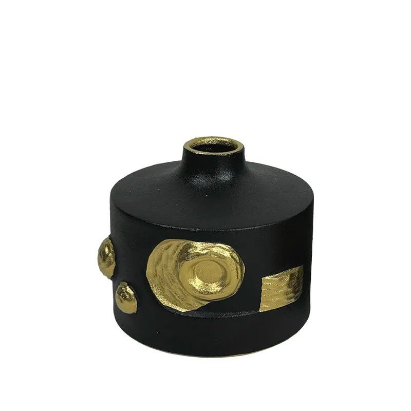 КЕРАМИЧНА ВАЗА ЧЕРНА, НИСКА СЪС ЗЛАТИСТИ ДОПЪЛНИТЕЛНИ ЧАСТИ - 16,5 см 1/12KIB