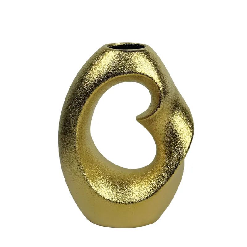 КЕРАМИЧНА ВАЗА, ЗЛАТИСТА, УСУКАНА С ДУПКИ, ГОЛЯМА - 29,2 см 1/8KIB