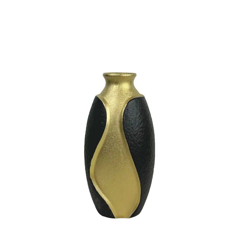 КЕРАМИЧНА ВАЗА, ЗЛАТНА С ЧЕРНО РЕЛЕФНО ПОКРИТИЕ, МАЛКА - 31 см 1/9KIB