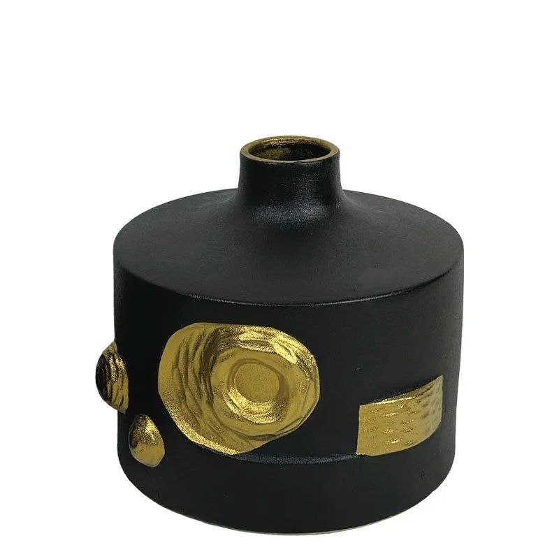 КЕРАМИЧНА ВАЗА, ЧЕРНА, НИСКА СЪС ЗЛАТИСТИ ДОПЪЛНИТЕЛНИ ЧАСТИ - 21,6 см 1/8KIB