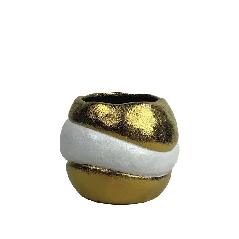 КЕРАМИЧНА ВАЗА-КУПА БЯЛА/ЗЛАТНА EMBODIMENT ДВОЙНА ГОЛЯМА - 22.4 см 1/6KIB