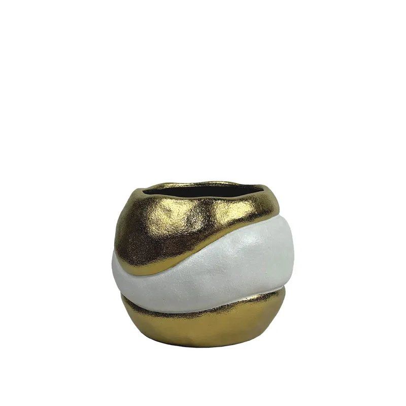 КЕРАМИЧНА ВАЗА-КУПА БЯЛА/ЗЛАТНА EMBODIMENT ДВОЙНА МАЛКА - 19.1 см 1/8KIB