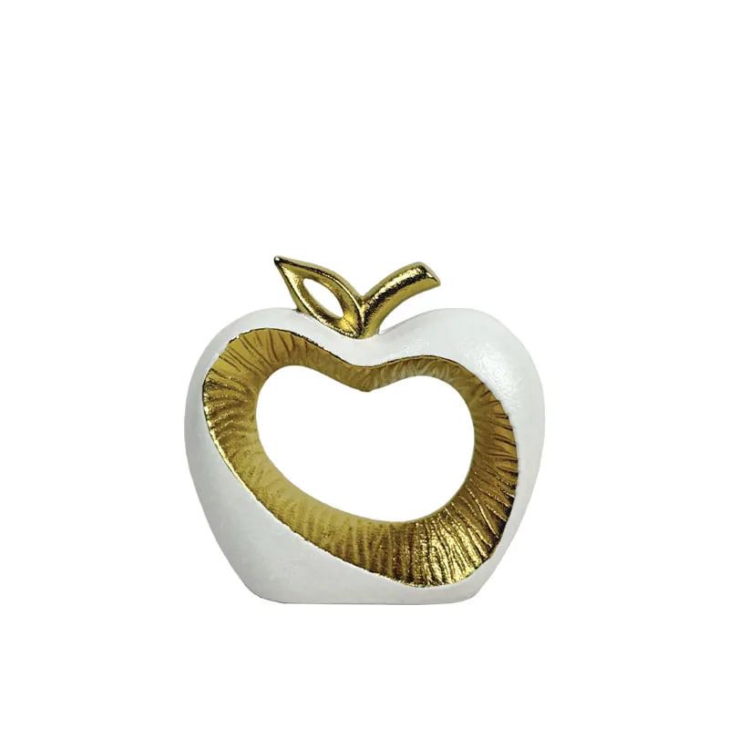 КЕРАМИЧНА ДЕКОРАТИВНА ЯБЪЛКА БЯЛА/ЗЛАТНА С ДУПКА - 19.8 см 1/16KIB