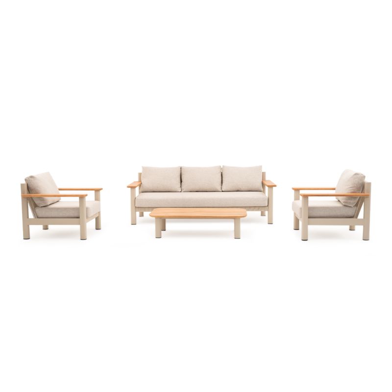 КОМПЛЕКТ ЗА ХОЛ 4 ЧАСТИ DEVERON SM6439.02 БЕЖОВ АЛУМИНИЙ-ВЪЖЕ-ОЛЕФИН - ТИКОВО ДЪРВО