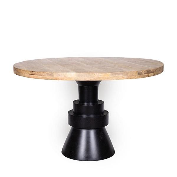 КРЪГЛА МАСА GEOMETRIC BOLD ПЛОТ МАСИВНО МАНГОВО ДЪРВО НАТУРАЛ И ЧЕРНА МЕТАЛНА ОСНОВА 120X120X74СМ