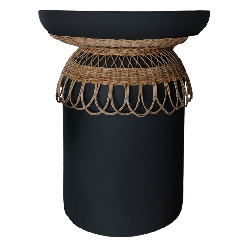 КРЪГЛА ПОМОЩНА МАСА PRILEP HM18159.01 ФИБРО ЦИМЕНТ В ЧЕРНО И РАТАН - Φ60X76.5HСМ.