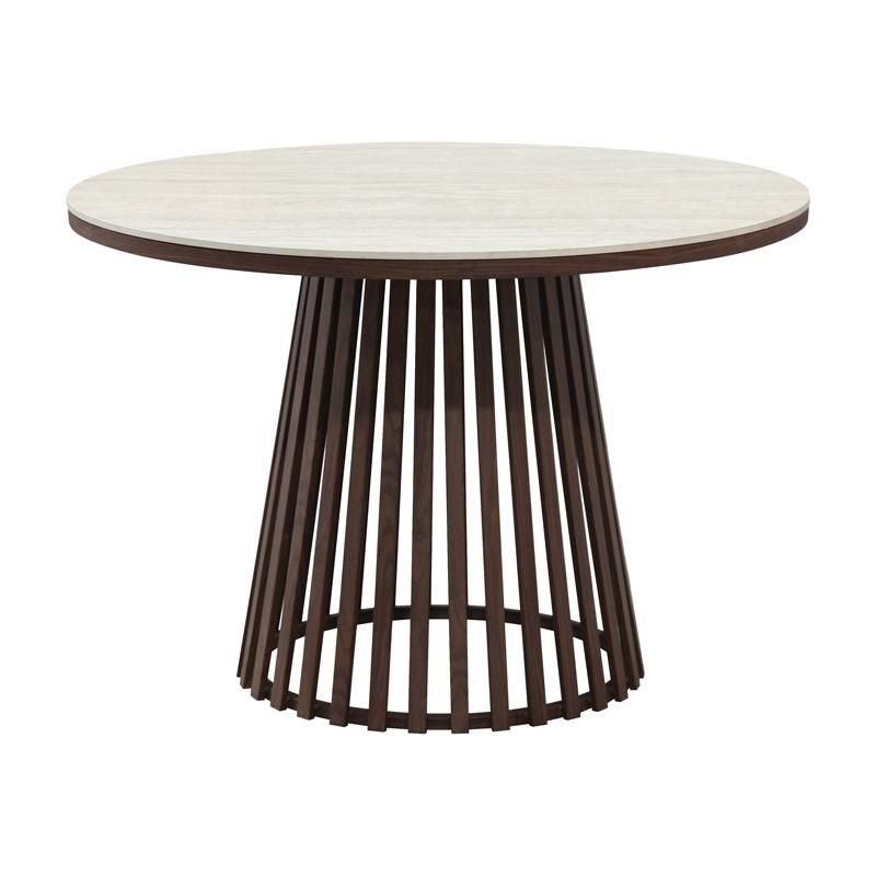 КРЪГЛА ТРАПЕЗАРНА МАСА FL06 С БЕЖОВА КЕРАМИЧНА ПОВЪРХНОСТ И МЕТАЛНА ОСНОВА В КАФЯВ ЦВЯТ 110X75СМ