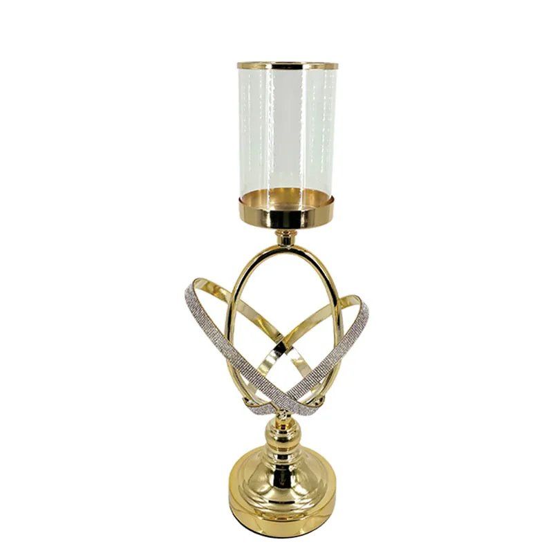 МЕТАЛЕН СВЕЩНИК, ЗЛАТЕН/БЕЛ, КРЪСТОВ ПРЪСТЕН СЪС СТЪКЛО И КАМЪНИ, МАЛЪК - Φ19x50см 12/КУТИЯ