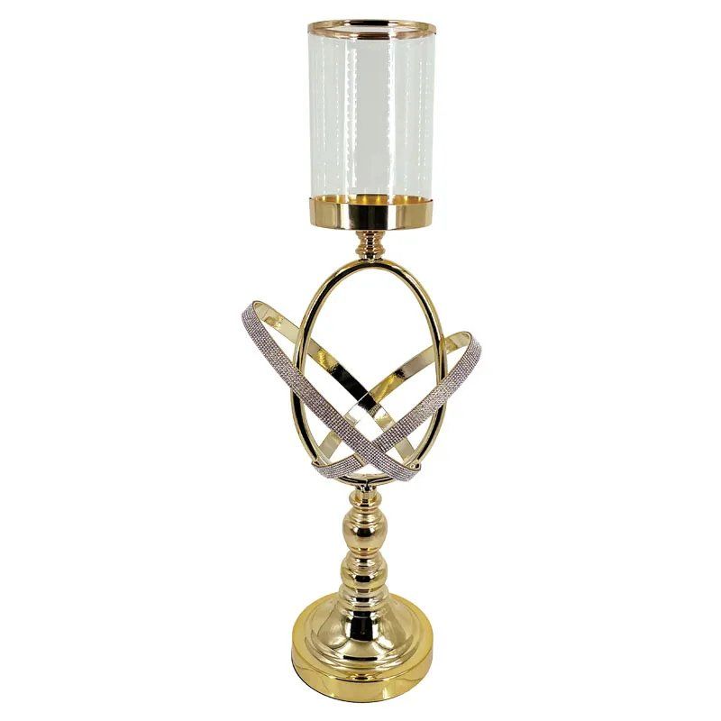МЕТАЛЕН СВЕЩНИК, ЗЛАТЕН/БЕЛ, КРЪСТОВ ПРЪСТЕН СЪС СТЪКЛО И СТРАС, ГОЛЯМ - Φ19x57см, 12/КУТИЯ